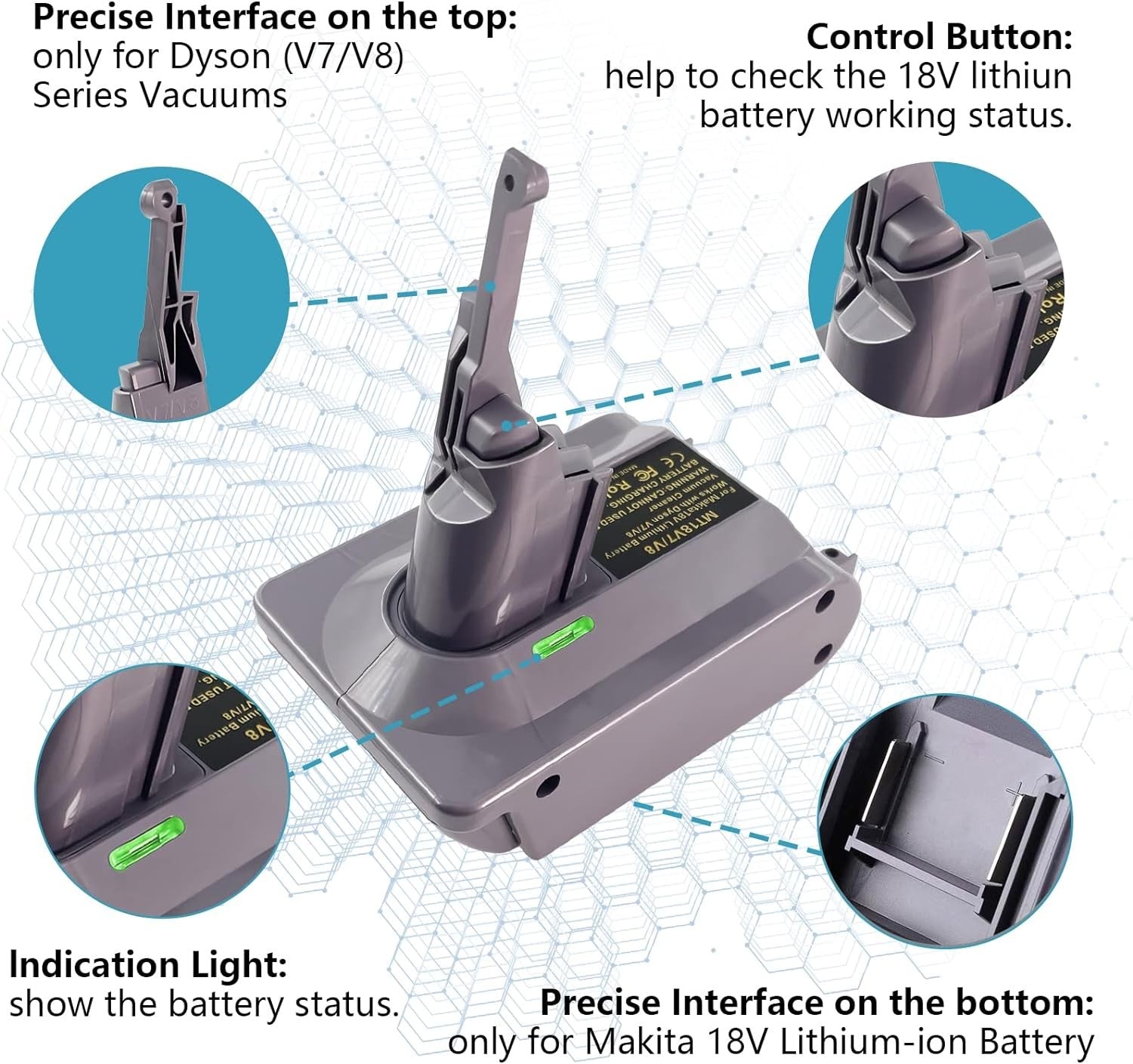 V7&V8 Adapter for Dyson V7 and V8, for Makita 18V Battery Work for Dyson Animal V7 V8 Absolute V7 V8 Motorhead Pro, TriggerFluffy HEPA SV11 SV10 Vacuum