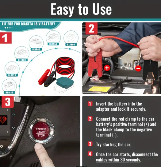 18V Makita 8AWG Jump Starter Cable 1.8m