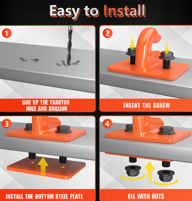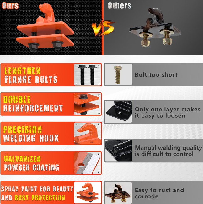 1. 3/8 Grab Hook Bolt-On Mount with Backer Plate for Installation