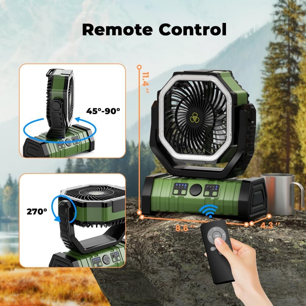 20000mAh Camping Fan with LED Light Auto-Oscillating Desk Fan with Remote & Hook