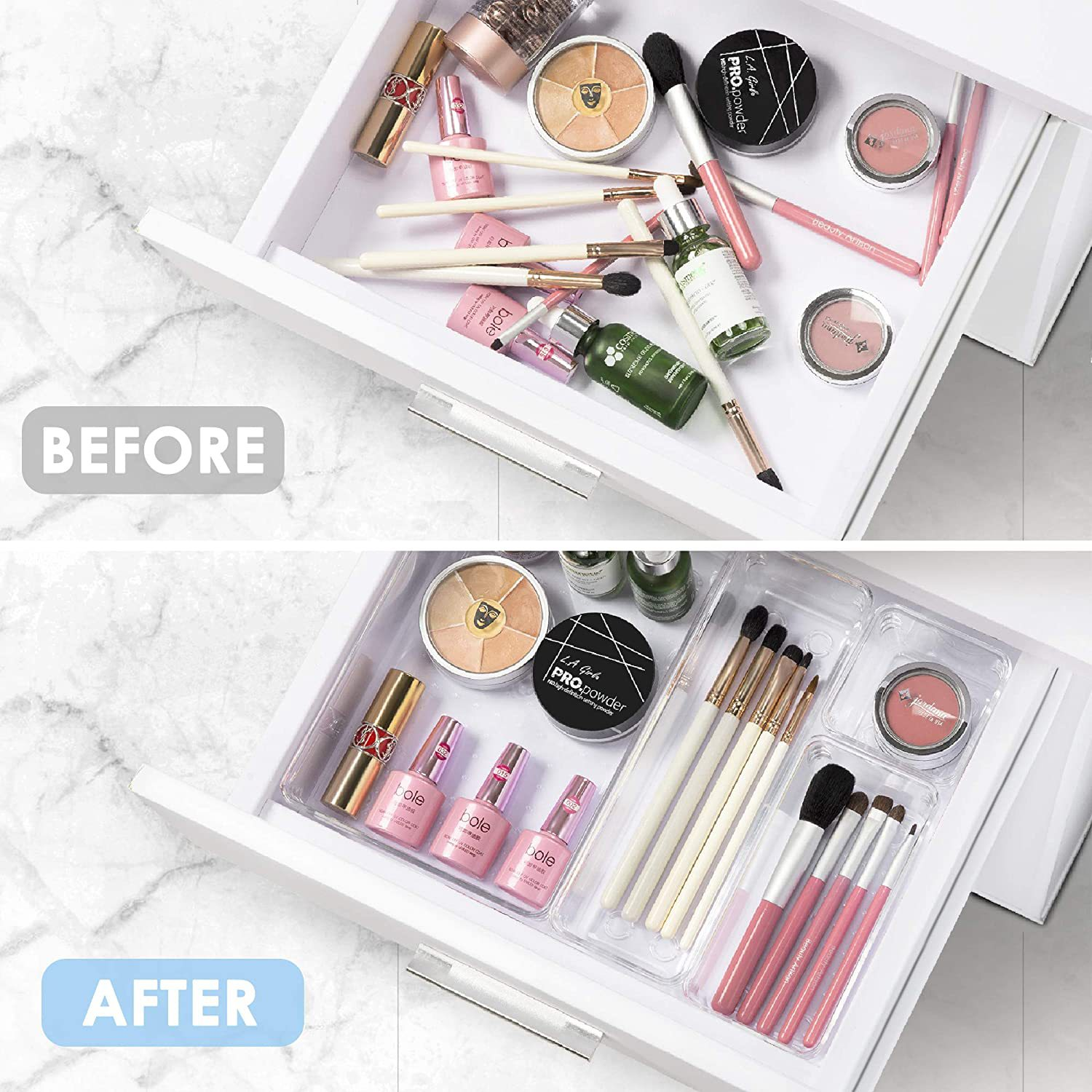 25PCS Clear Plastic Drawer Organizers Set Storage Bins for Makeup,Jewelries