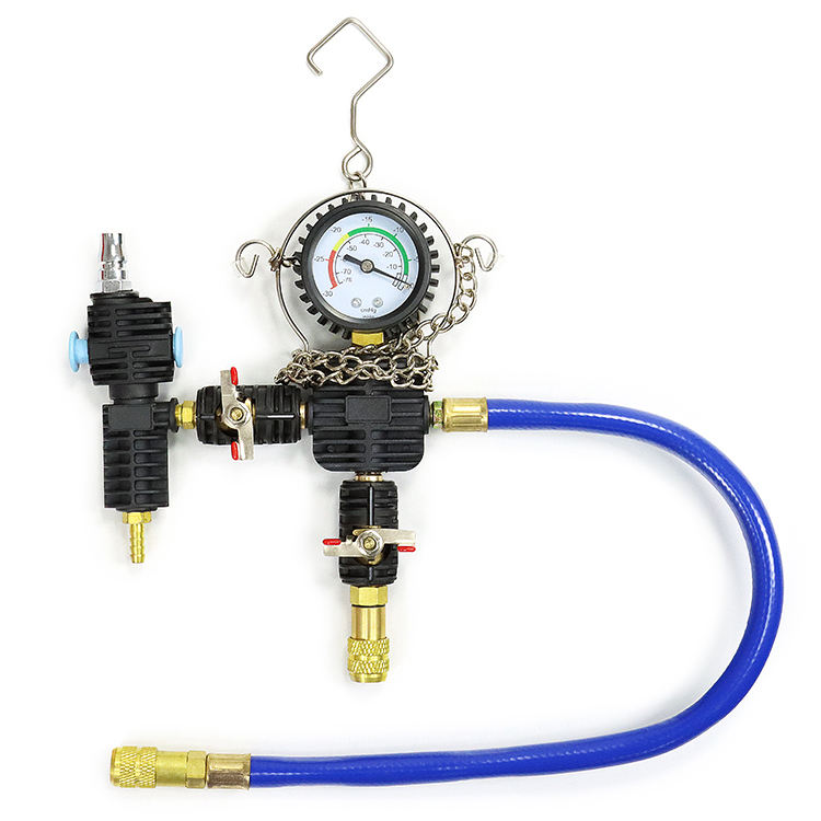 Special design of vacuum purge andamp; refill tool connection, test range 0 - 35 psi.