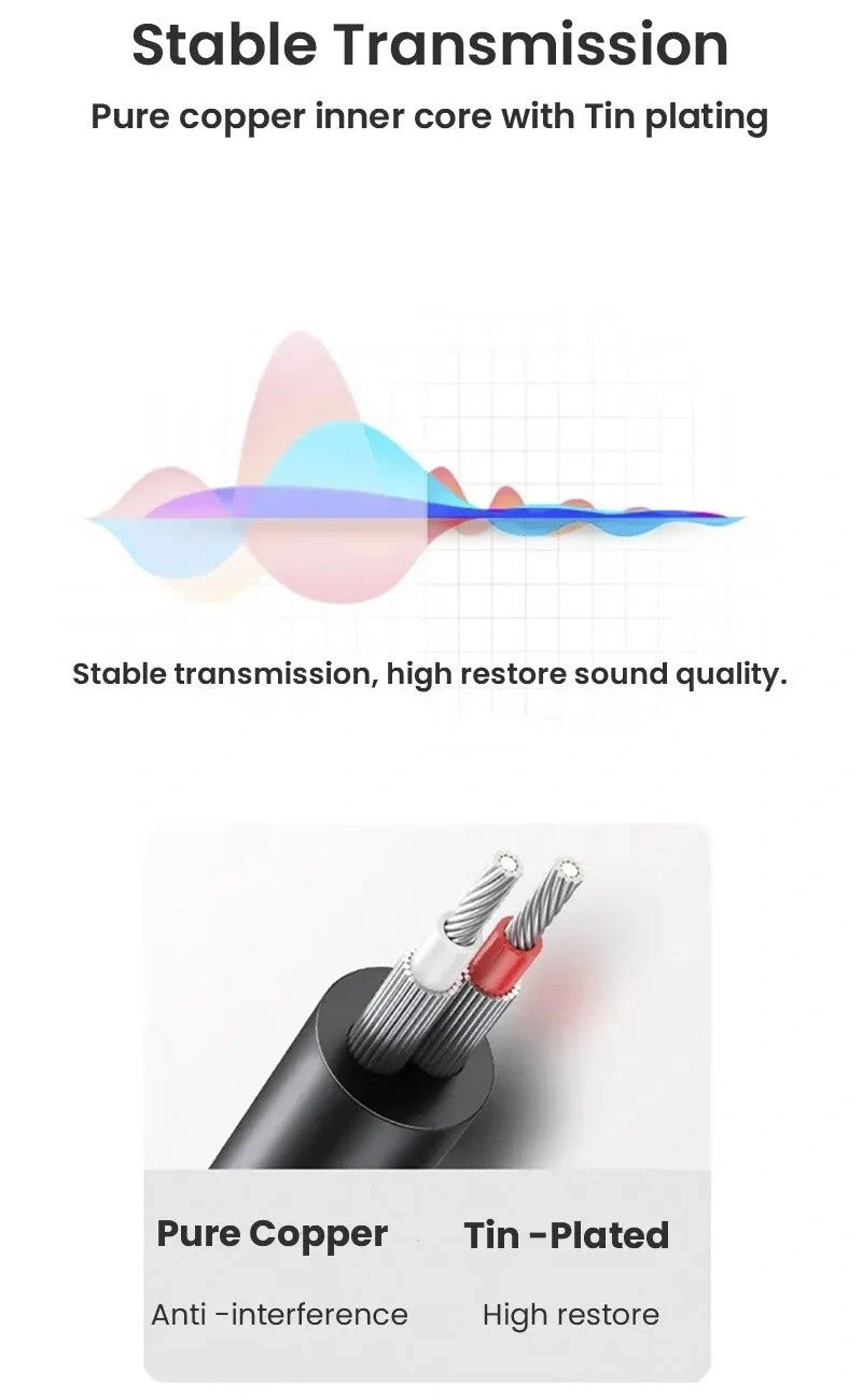 24K Gold Plated Connectors :The RCA connectors are plated with 24K gold, ensuring a high-quality and durable connection.