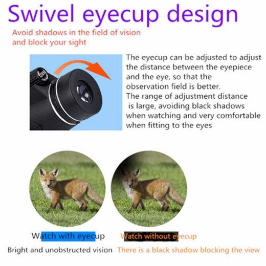 50 x 60mm HD monocular: 50X magnification factor. clearer images, objective lens has brighter image with the help of great light-collecting power.