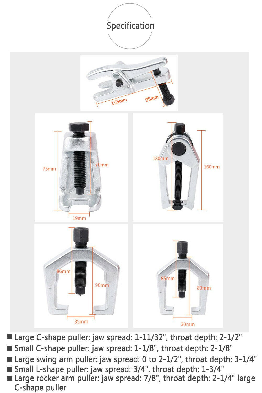 5pcs Front End Service Tool Kit Ball Joint Tie Rod Set Pitman Arm Puller Remover