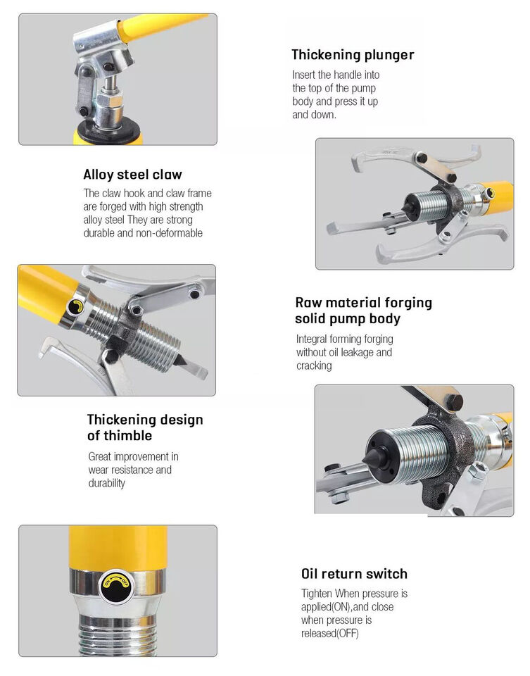 You can install two or three jaws and adjust the height as needed. Besides, the pump head of the hub removal tool can rotate 360°. It's easy for you to operate and use it.