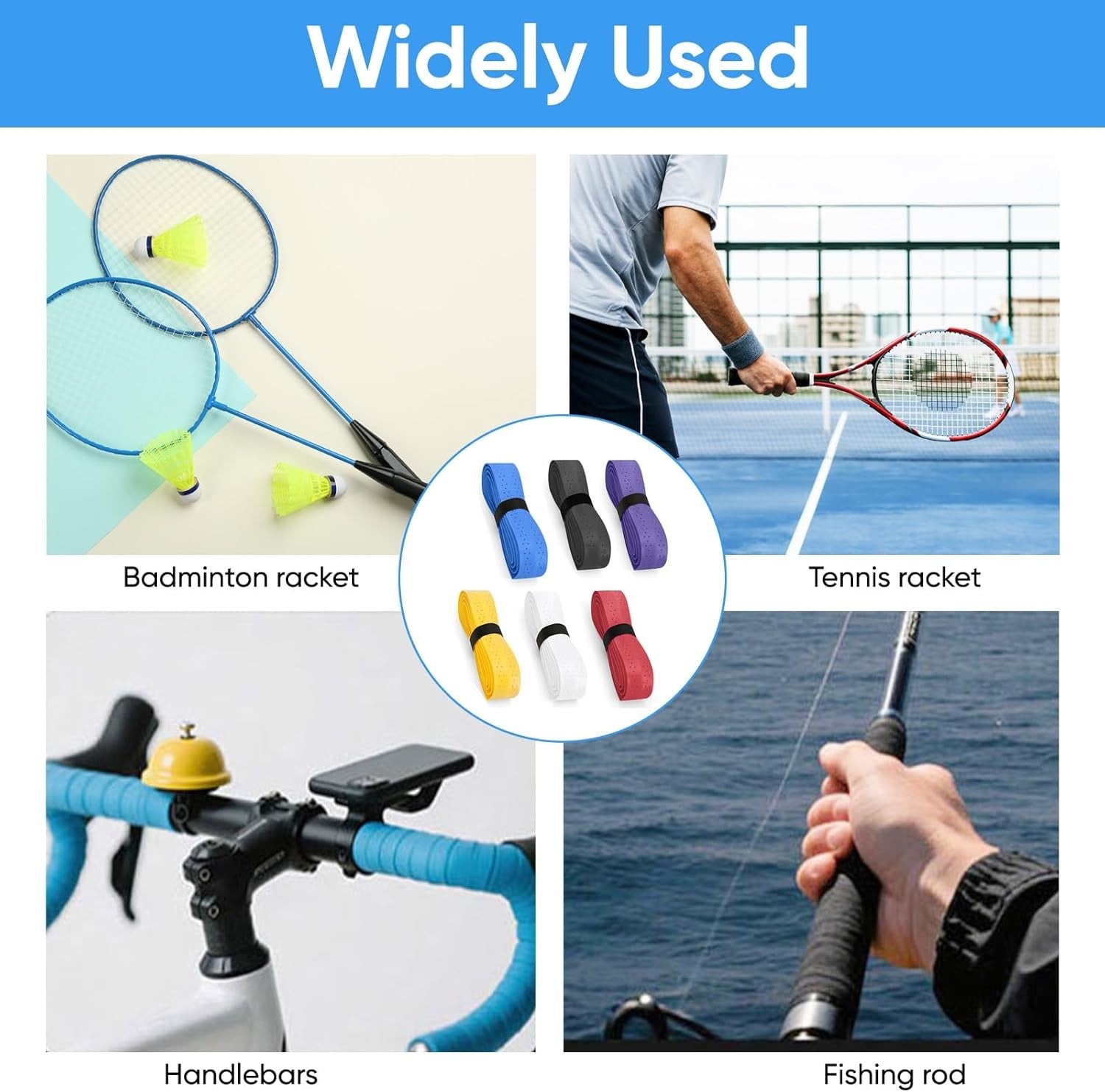 6-Color Set: Includes 6 badminton racket grip tapes in assorted colors (Black, White, Red, Yellow, Purple, Blue) - ideal for customizing and refreshing multiple rackets
