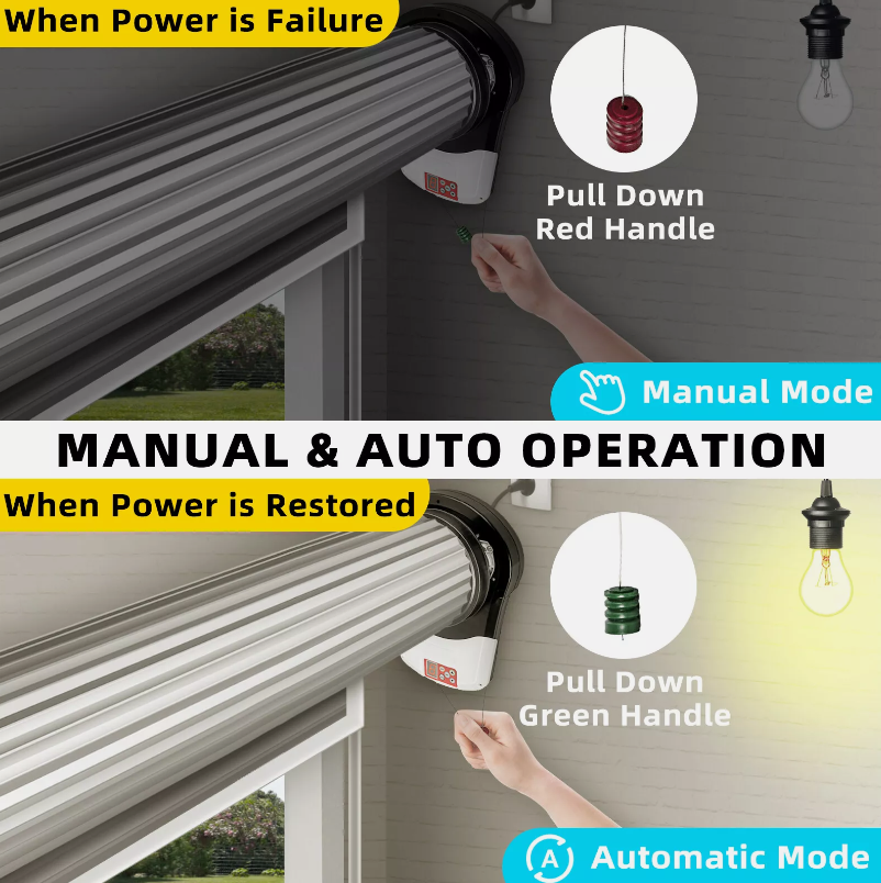 This roller door opener can power up to 16.4ft, 2-door area by a 24V motor, the rolling gate will spin up in no time. It is designed for easy installation with minimal side room and reliable casing.