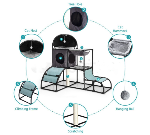 Constructed of durable PVC tubes, scratch-resistant sisal, high-quality Oxford fabric, and soft flannel, this cat furniture gives them a delightful and durable space to play and relax throughout the year.
