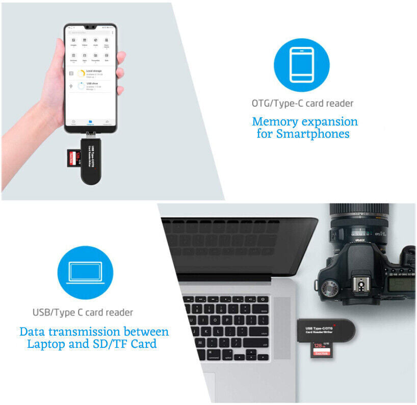 CF/SD/TF Card Reader USB-A & Type C Ports Card Adapter for Laptop MacBook Phone