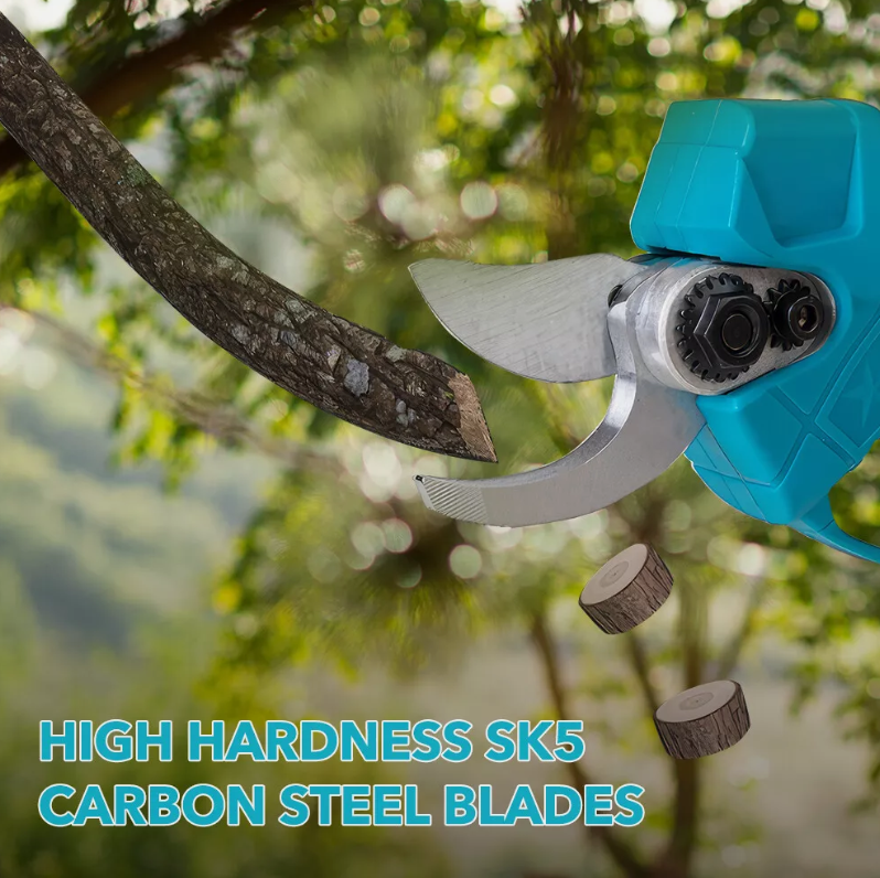 Sharp Blade & Strong Power: The professional cordless pruning shear is forged from high carbon steel and powered by brushless motor. It is extremely sharp and durable, making it easy to cut 1.2 inch/30mm hard branches.