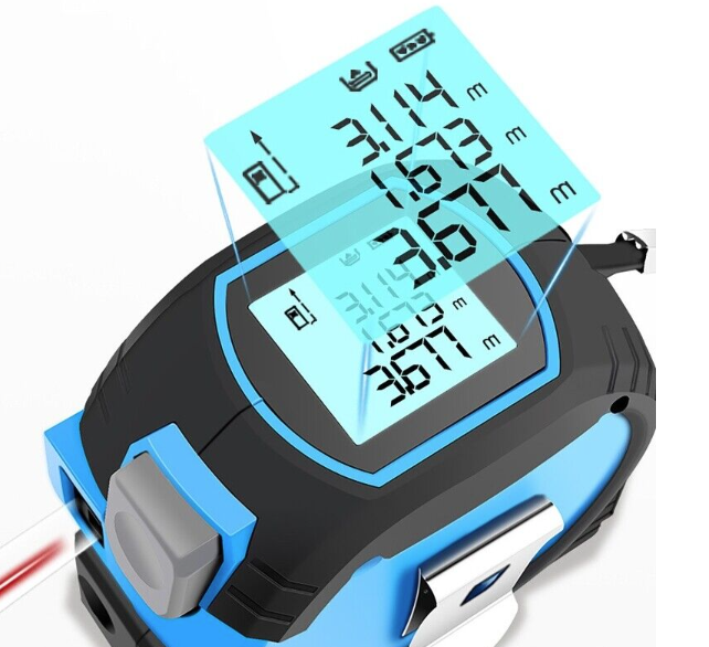 3-in-1 design digital rangefinder, rangefinder, 5m tape measure and cross mark, all in one.