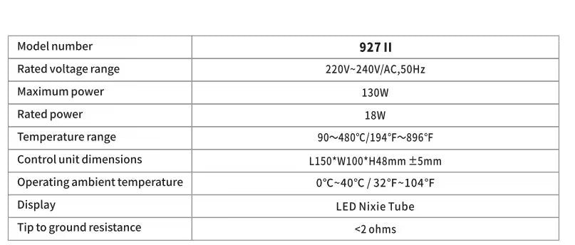 Constant Temperature Control:PID technical program is adopted to ensure accurate tip temperature control, so that the display temperature and actual temperature are accurate to ±2℃.