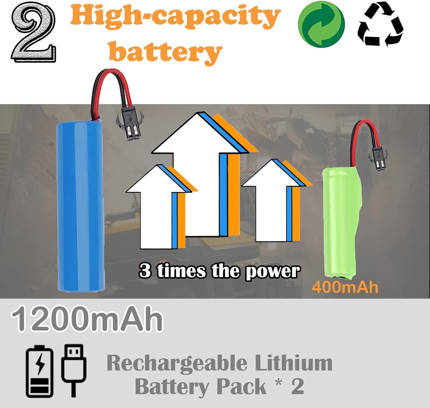 2 High-capacity Batteries: 1200 mAh rechargeable batteries make excavator and kids more energetic! It offers nonstop construction fun.