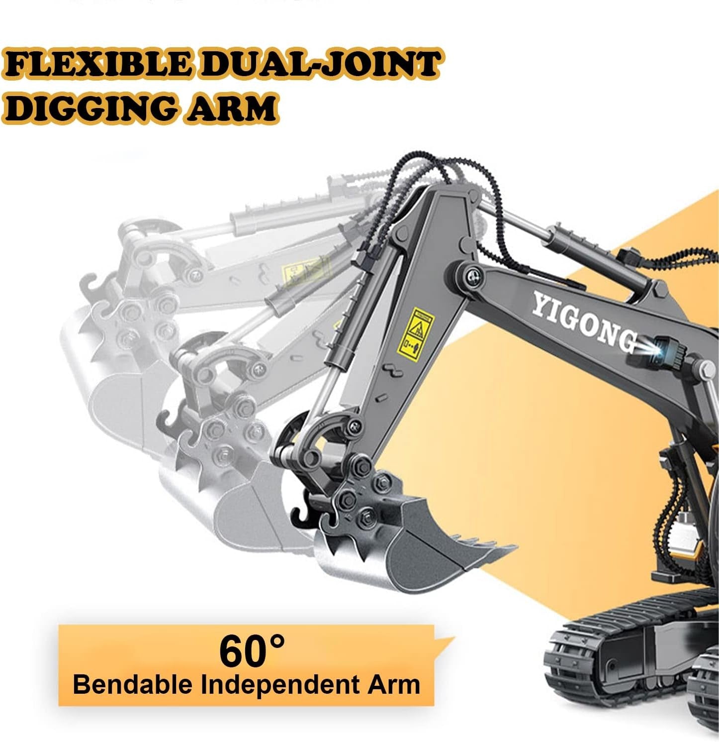 Powerful Alloy Bucket: Performs well on real dig and lifting a shovel full. Can coordinate with the cab swiveling within 680 degrees and the excavator moving forward/back.Take the remote control excavator to an outdoor space like a sandbox, beach, or park.