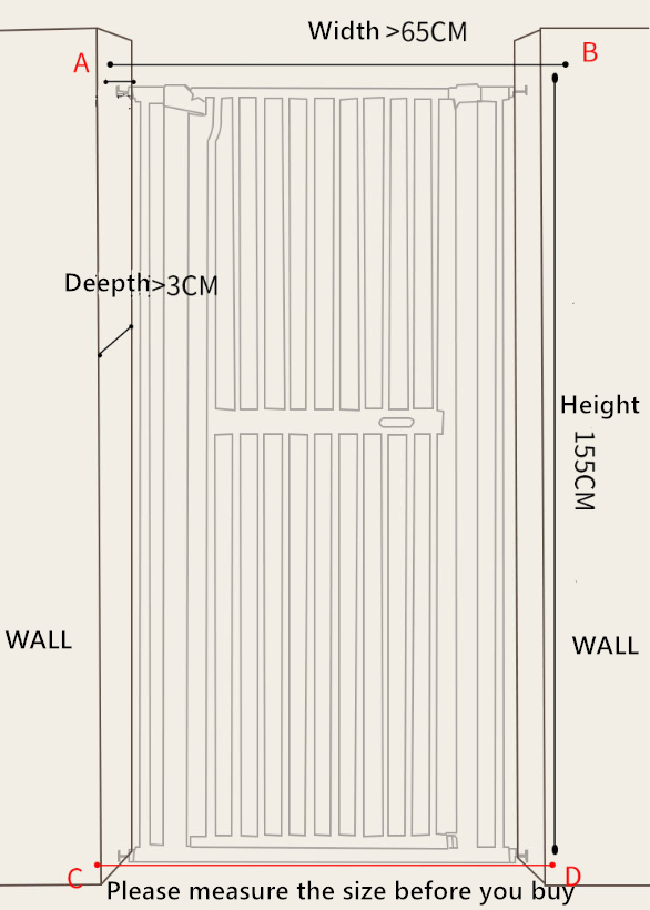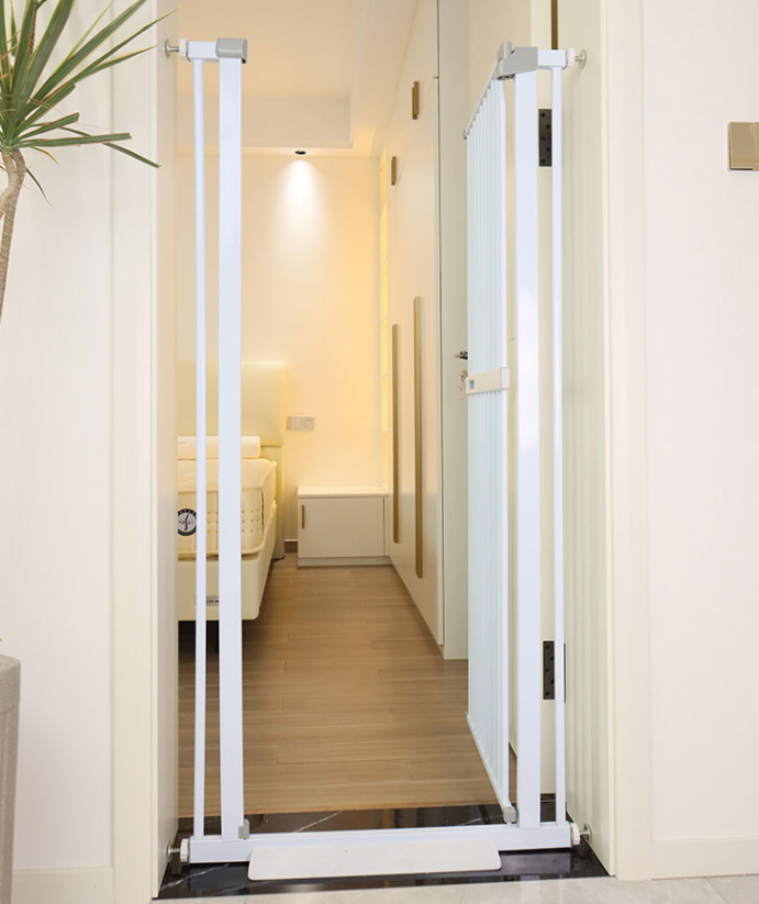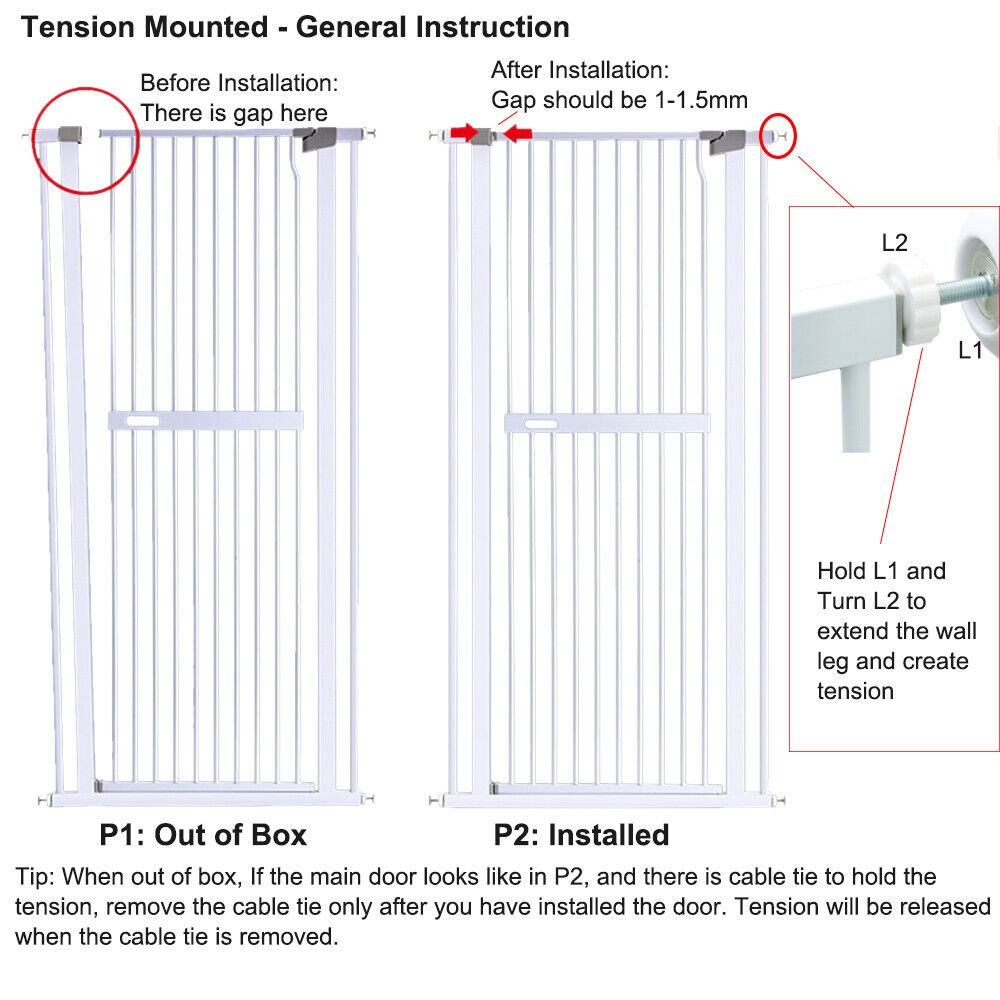 Stands 150cm Tall. Never worry your pets jump over the gate. This pet gate is perfect for stairs, doorways, hallways, and houses. 50cm large walk-thru gate makes it easier to walk. Notice: please measure your openings before purchasing to ensure proper fit.