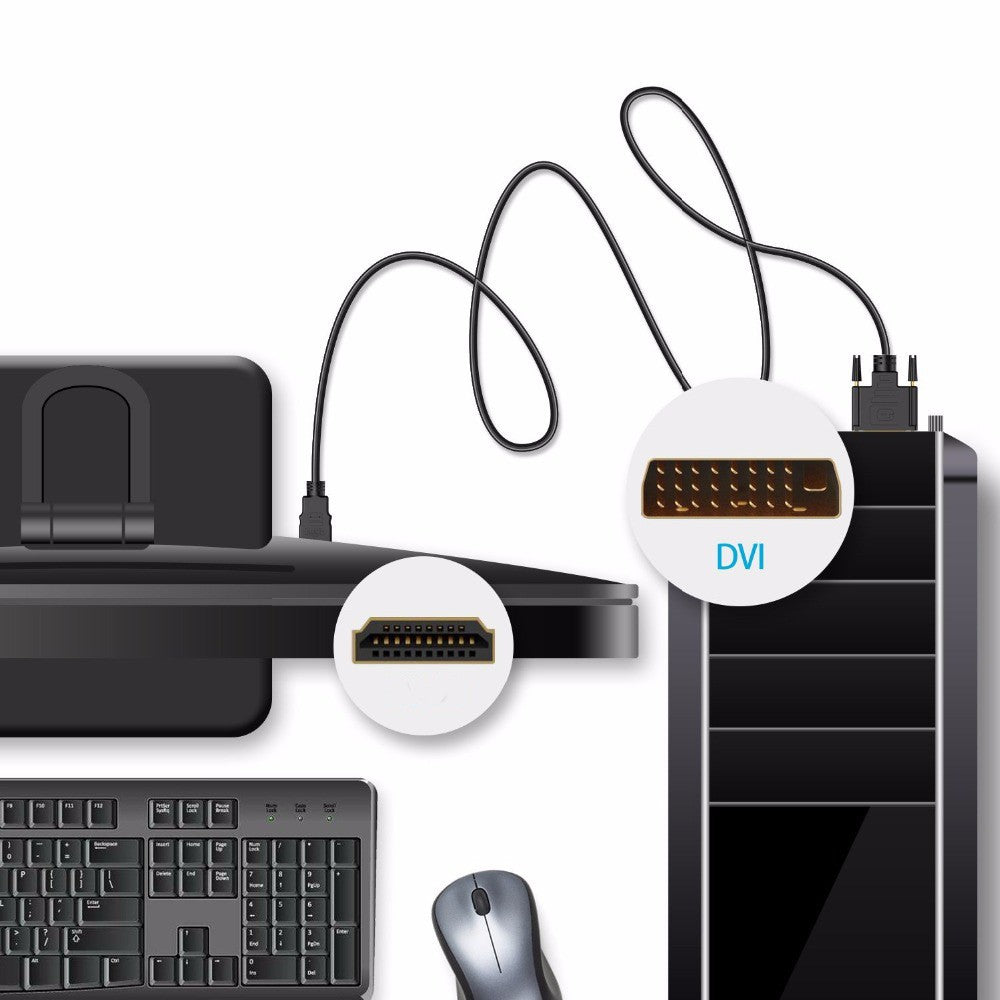 HDMI to DVI Adapter Cable, 1080P, Gold-Plated 1.8M
