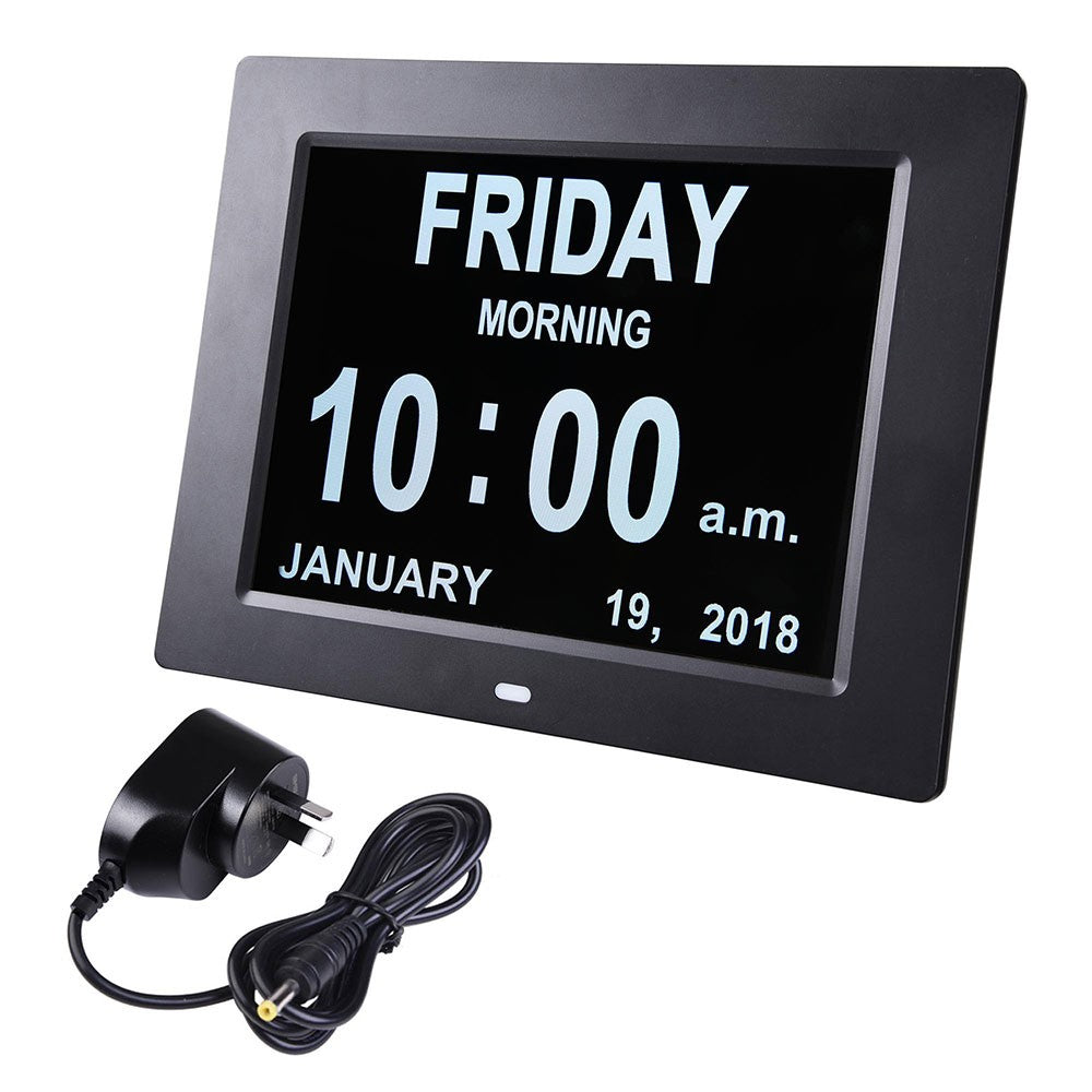 LED Clock Large Dementia Digital Wall Calendar Time Day Week Year Black