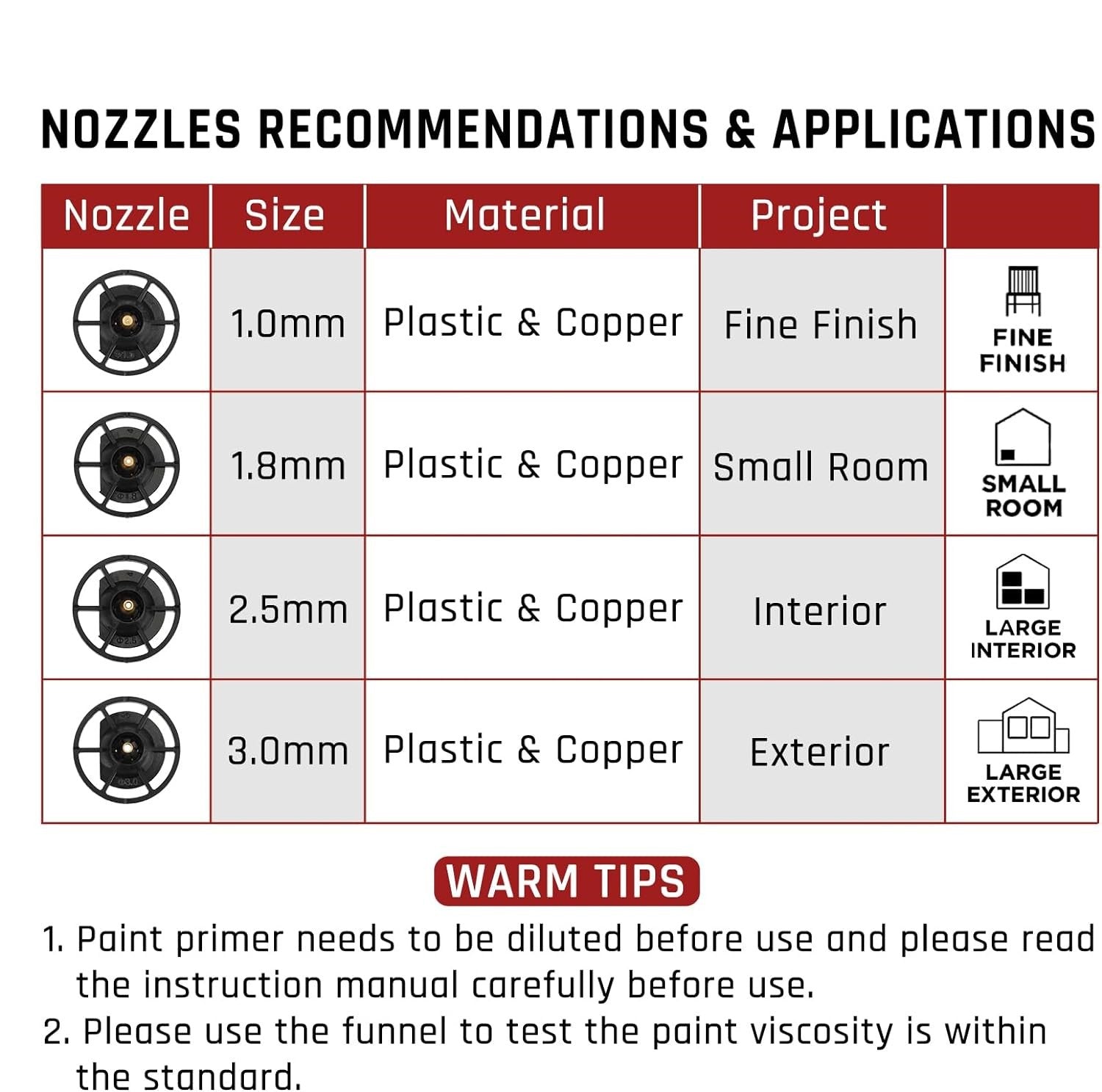The machine includes a list of accessories: 4 nozzles: 1.0MM, 1.8MM, 2.5MM, 3.0MM nozzles