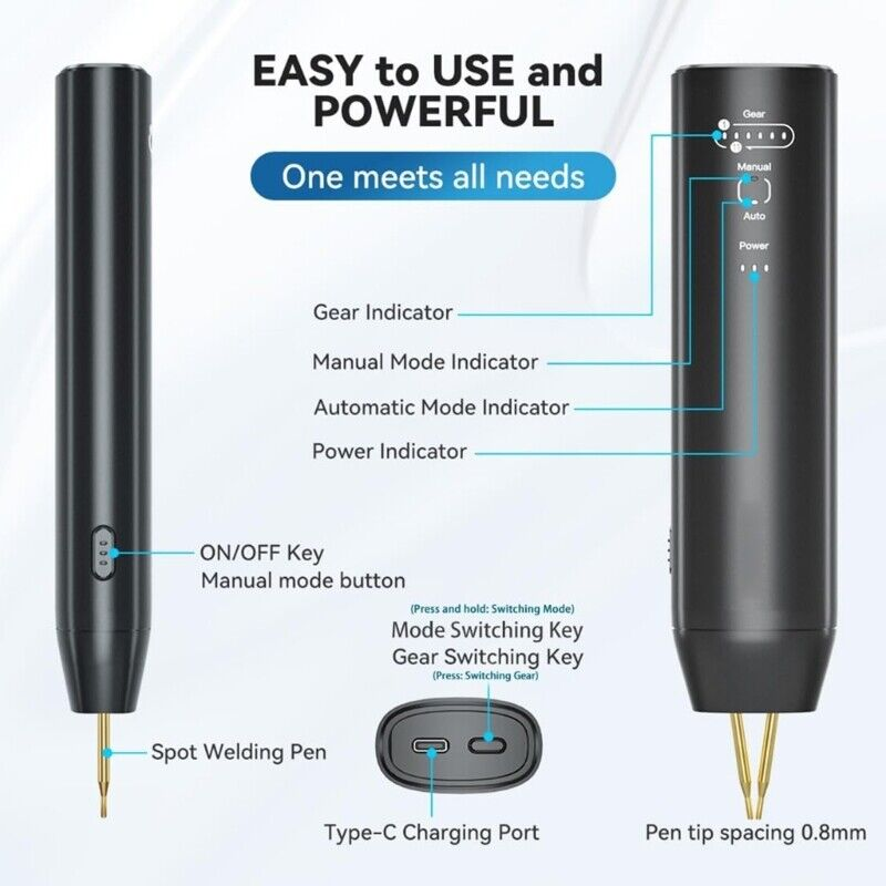 Features: This handheld spot welder eliminates the need for an additional spot welding pen, making it more convenient