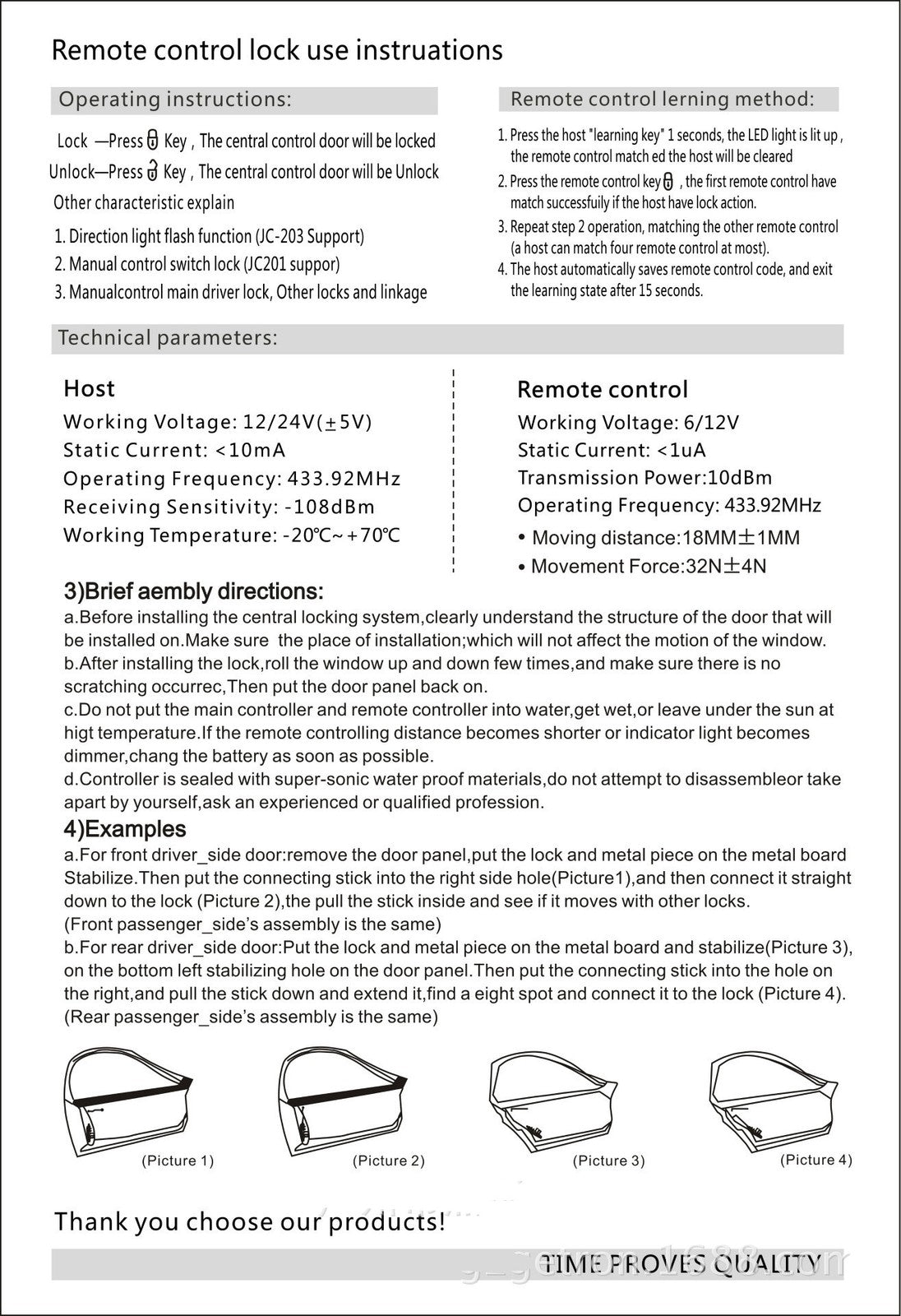 Before installing the system, please understand clearly the structure of your car door, make sure the central door locking system can install in your car, and the installation will not affect the original window.