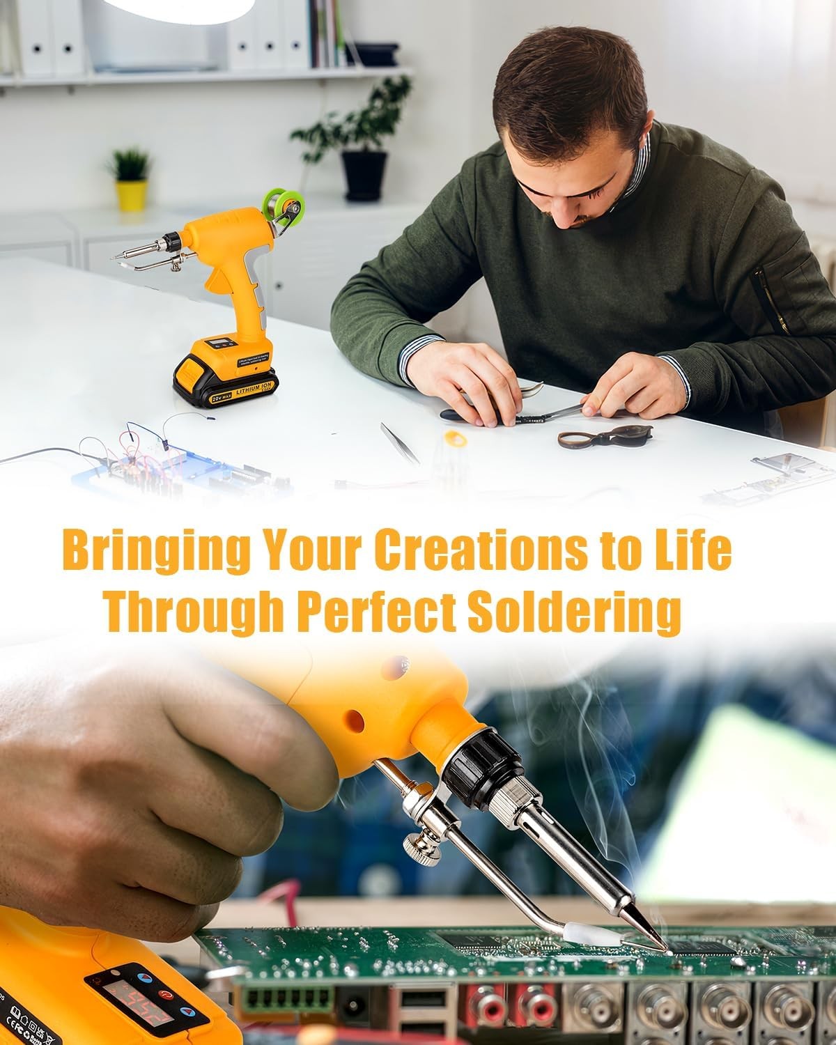 Cordless Operation: This 75w 20v soldering iron is perfectly compatible with Dewalt 20v flex batteries DCB203 DCB204 DCB205 DCB206 DCBP034 DCB606 DCB609 etc.(Batteries not included)