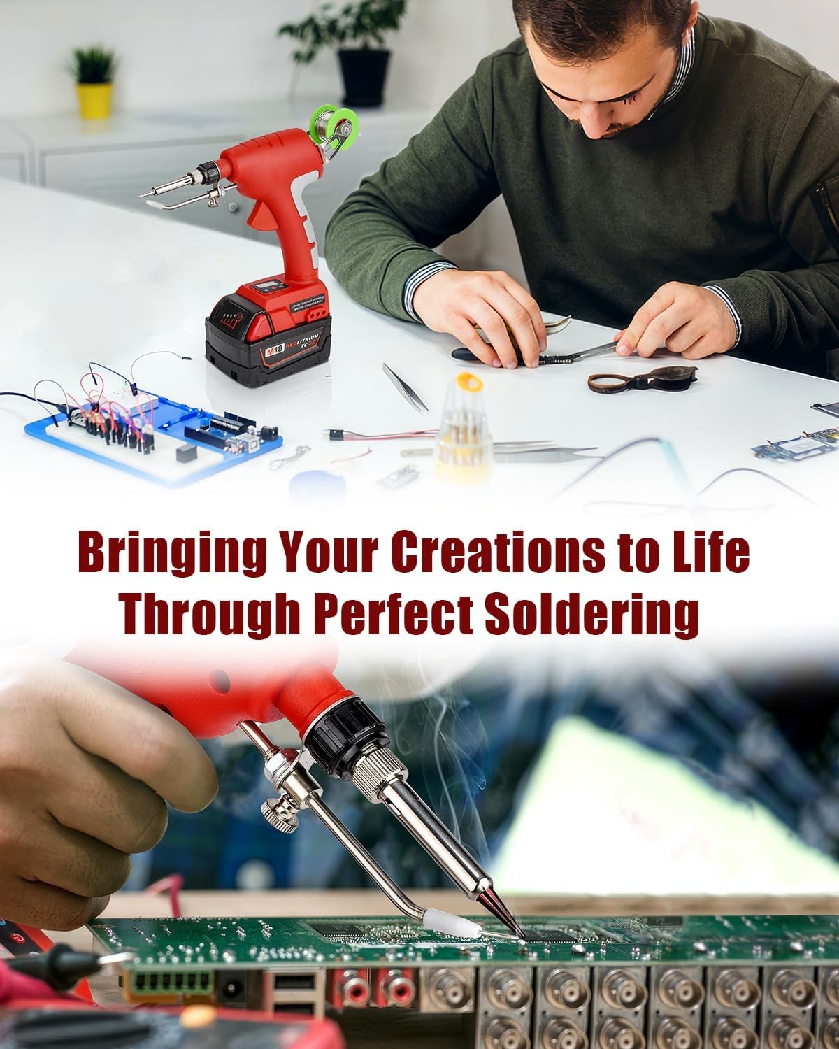 Cordless Operation: This 75w 18v soldering iron is perfectly compatible with Milwaukee M18 18v batteries 48-11-1820 48-11-1840 48-11-1850 48-11-1852 48-11-1862 48-11-1865 48-11-1880 etc.(Batteries not included)