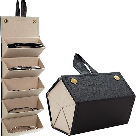Travel Sunglasses Organizer, Foldable Travel Sunglass Case with 5 Slots for Multiple Pairs, Portable Eyeglasses Holder Glasses Storage Box for Women Men Home Display Travel
