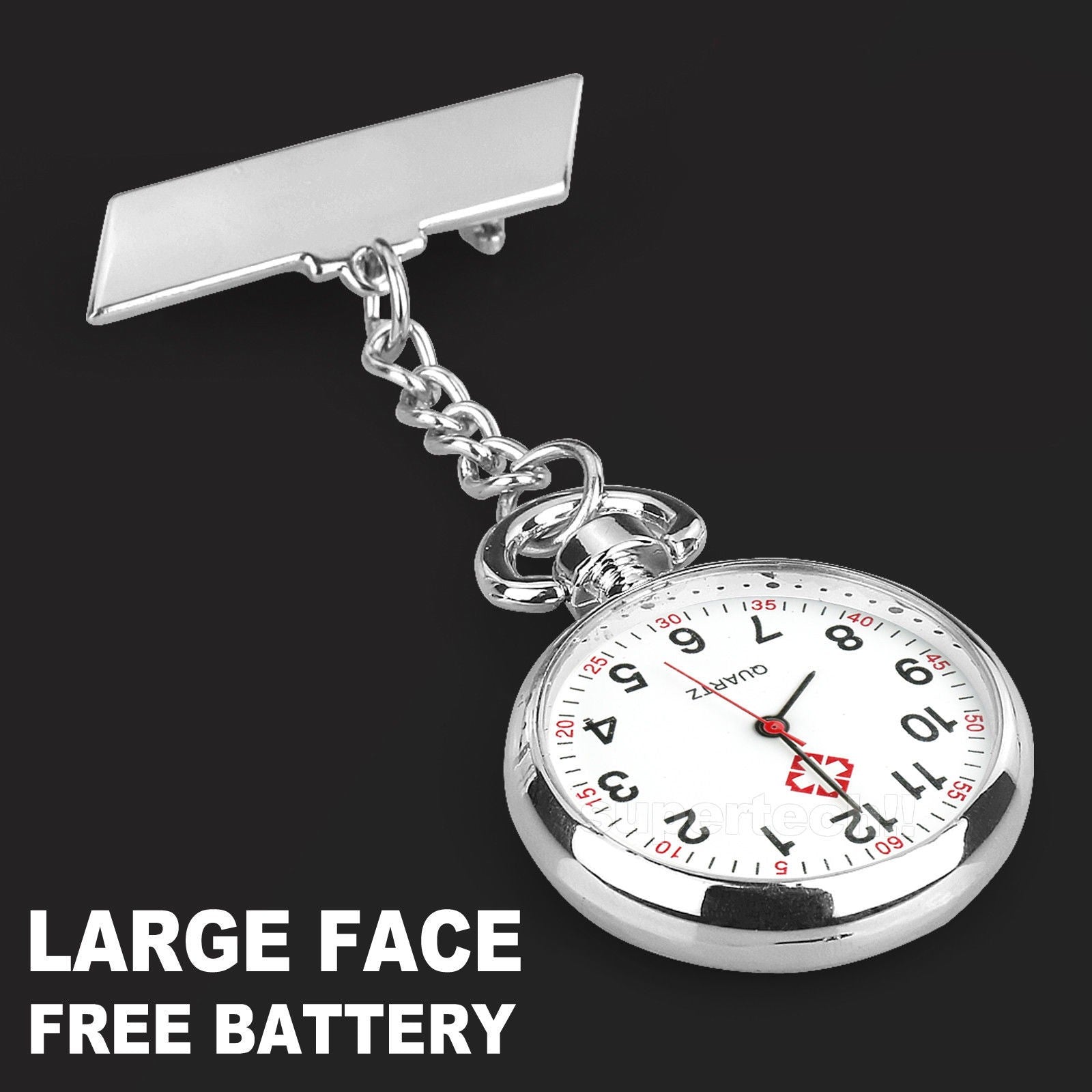 Silver Large Face Nurse Pendant Pocket Fob Brooch Watch