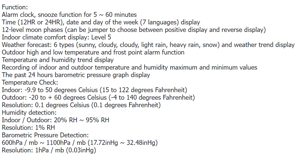1. Colorful Display Multi-functional Weather Thermometer - The 6.5" large-screen display has great color matching and rich display content, allowing you to clearly read indoor and outdoor temperature and humidity information, weather changes, atmospheric pressure index, moon phase, yard clock, date, comfort indicator, temperature alarm, etc.